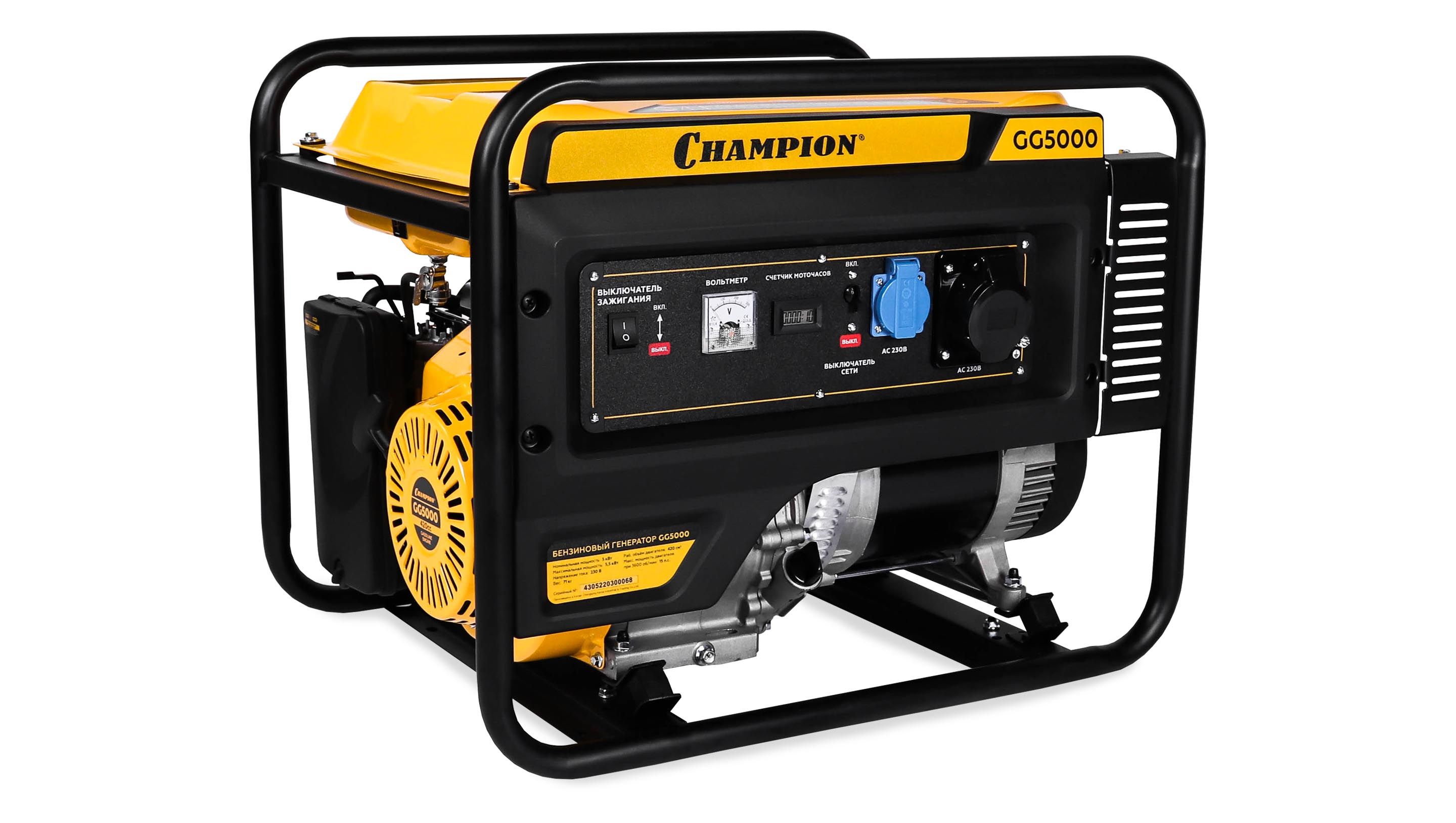Бензиновый генератор CHAMPION GG5000 (5/5,5кВт 15лс 25л 71кг счетчик) - предназначен для обеспечения электроэнергией в условиях отсутствия основного источника электричества. Он обычно используется как резервный источник питания для дома, офиса или на открытом воздухе.