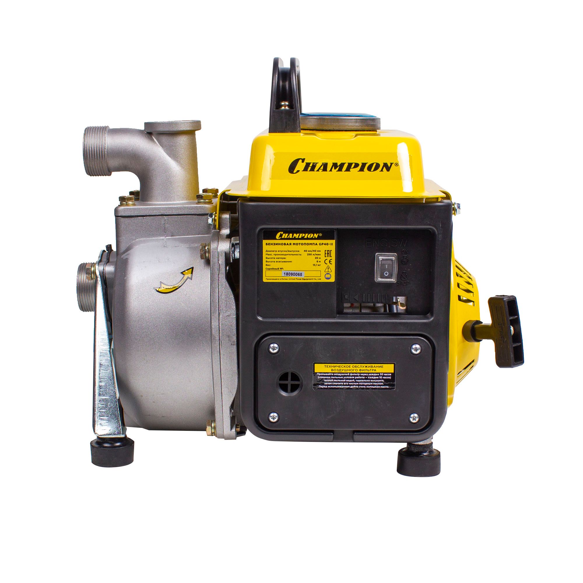 Мотопомпа CHAMPION GP40-II (1,5" 250л/мин 6/20м 2лс 2Т 1,6л 13,1кг) - предназначена для перекачивания воды и других жидкостей. Она используется в различных отраслях, таких как строительство, сельское хозяйство, пожаротушение и другие.