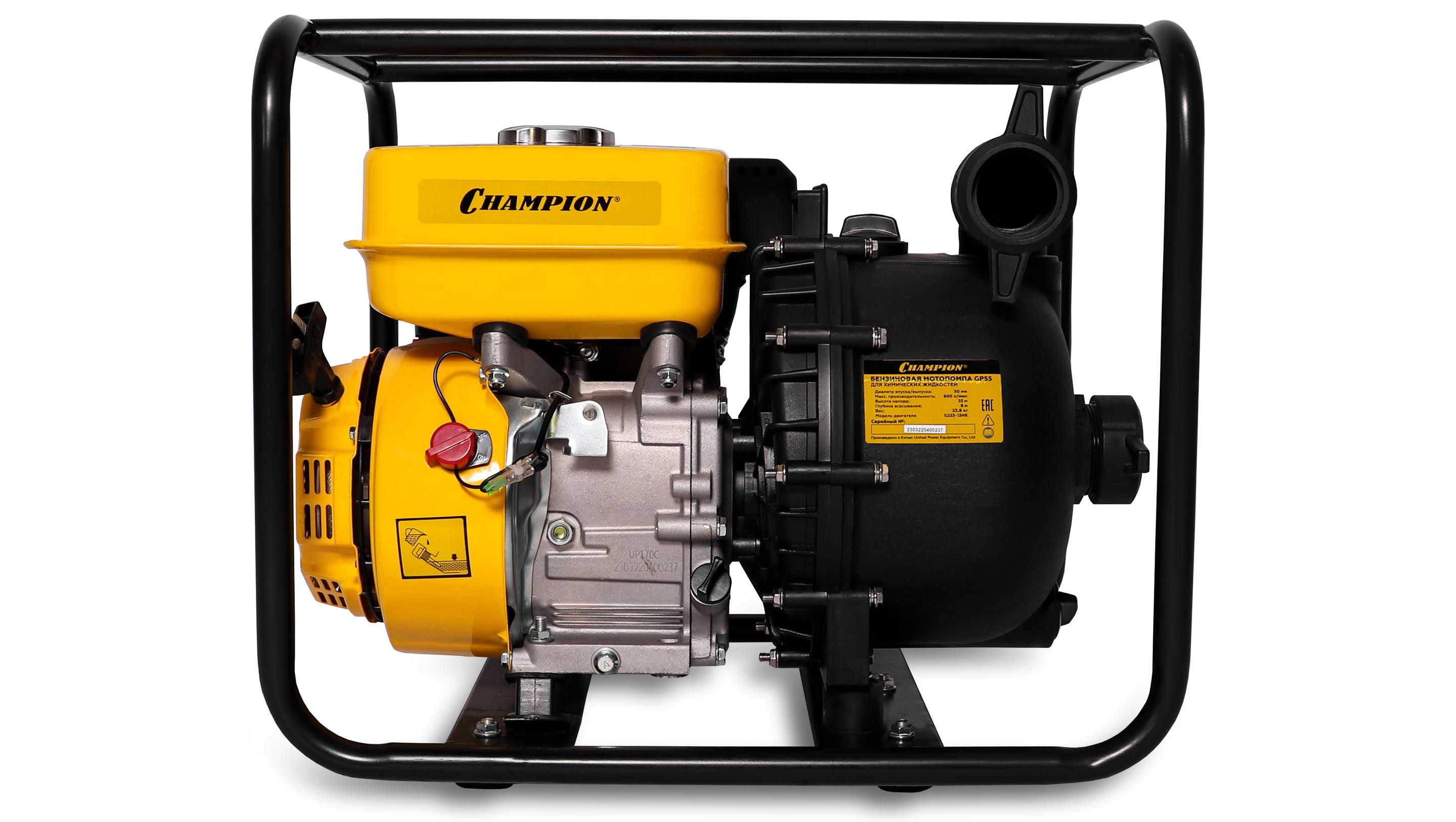 Мотопомпа CHAMPION GP55 (2" хим. жидкости 600л/мин 8/35м 7,5лс 3,6л 23,8кг) - предназначена для перекачивания воды и других жидкостей. Она используется в различных отраслях, таких как строительство, сельское хозяйство, пожаротушение и другие.