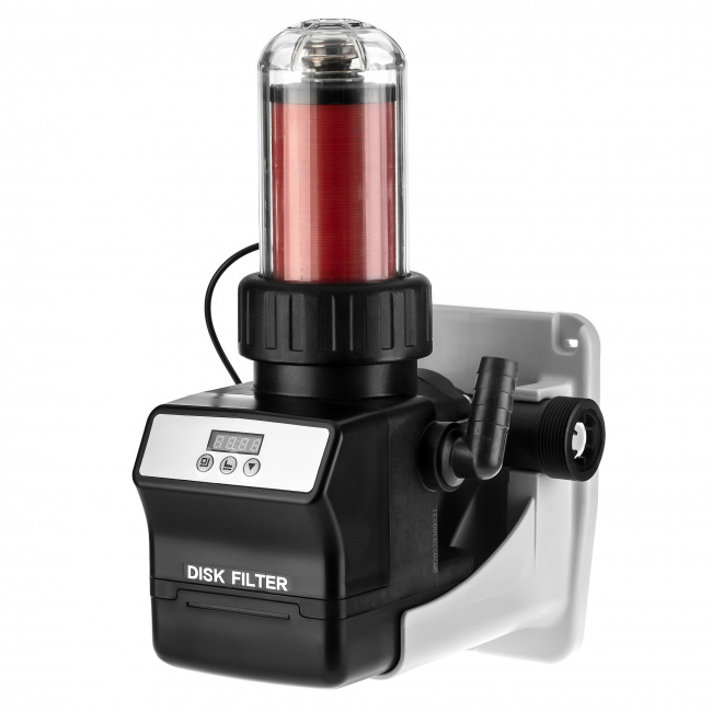 - В фильтре предусмотрена возможность промывки установленного картриджа от накопленных во время работы примесей. Очистка выполняется в автоматическом режиме. Для этого диски, из которых состоит в фильтрующий картридж, раздвигаются, при этом поток воды переключается на обратное направление.