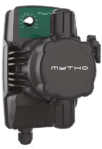 Дозирующий насос Mytho ML08AHH10N0 — аналоговый дозировочный насос с постоянной скоростью дозирования, которая регулируется вручную. Насос также может пропорционально реагировать на внешние аналоговые (4–20 мА) или цифровые сигналы (от импульсного расходомера). Насос имеет шесть положений переключателя: три в режиме деления (1:1, 4:1, 10:1), один в режиме умножения (1 x N, N = 1…10), один для пропорционального сигнала 4–20 мА и один для постоянного дозирования. Шаговая функция регулируется микропереключателем. Насос оснащён контролем уровня реагента, ручным клапаном стравливания воздуха и быстро извлекаемыми электрическими соединениями, защищёнными крышками. Мембрана насоса выполнена из PTFE, а головка насоса и корпус — из PVDF и PP соответственно. Защита насоса — IP65. Стандартный монтажный набор включает PVDF донные и инжекционные клапаны, PVC всасывающую трубку и PE нагнетательную трубку. Электропитание осуществляется от сети 100–240 В 50/60 Гц, мощность составляет 15 Вт, а производительность — 4–8 л/ч при рабочем давлении 2–12 бар.