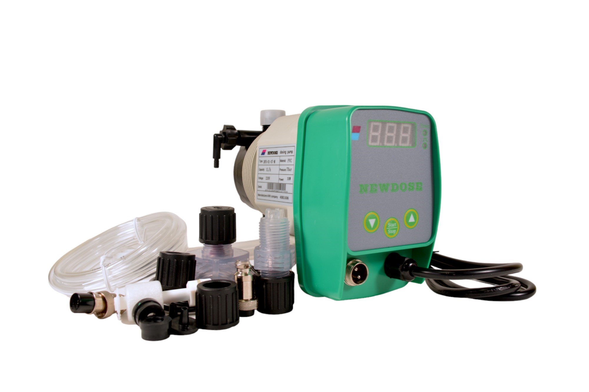 Дозирующий насос Newdose DFD-01-07-M-PVT-A — предназначен для точной и регулируемой подачи различных жидкостей (включая кислоты, щёлочи, растворители и пищевые добавки) в системах водоподготовки, химической, пищевой, косметической и фармацевтической промышленности, а также для обслуживания бассейнов, автомоечных комплексов и лабораторных исследований при температуре жидкости от 5°C до 40°C и максимальном давлении до 7 бар.