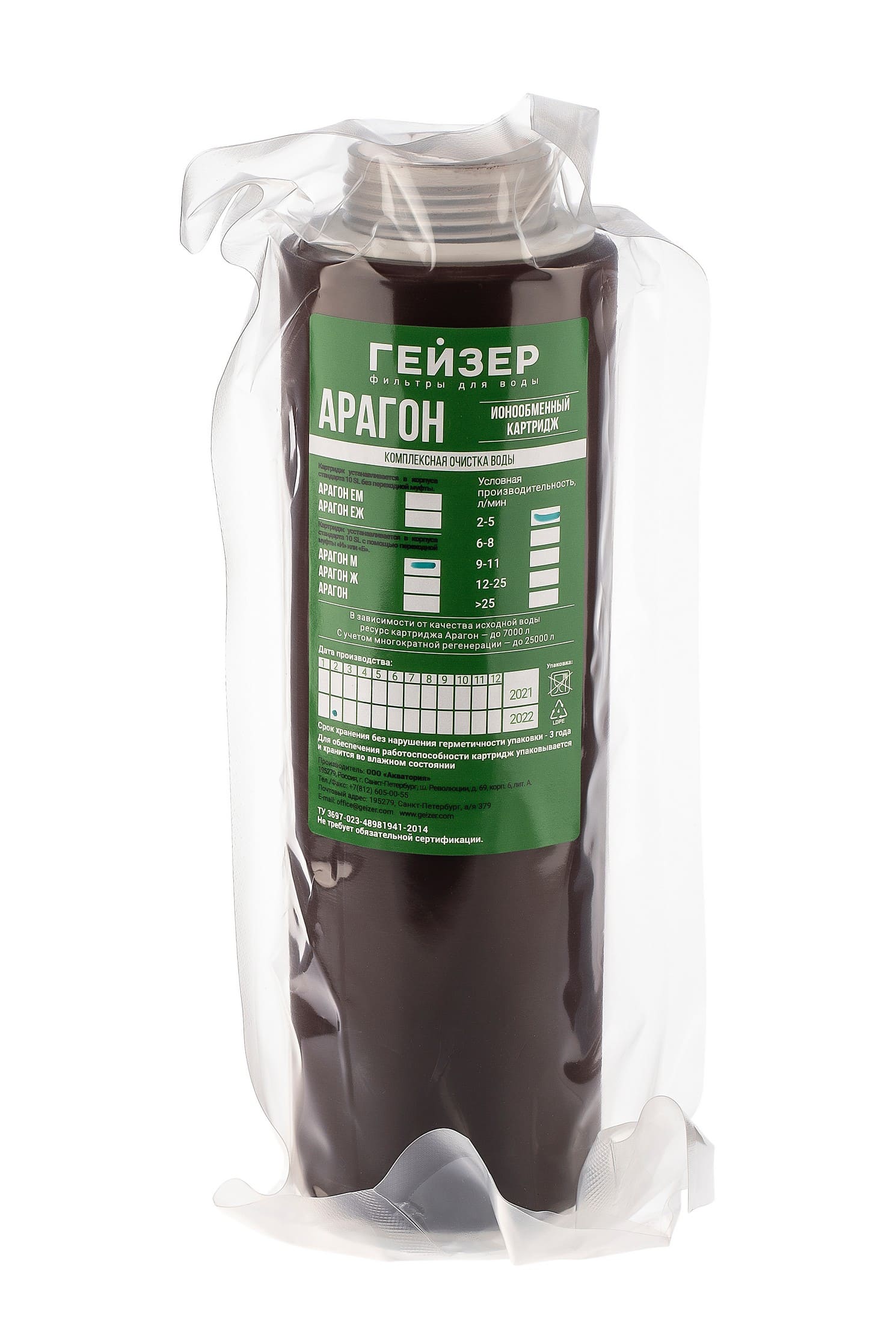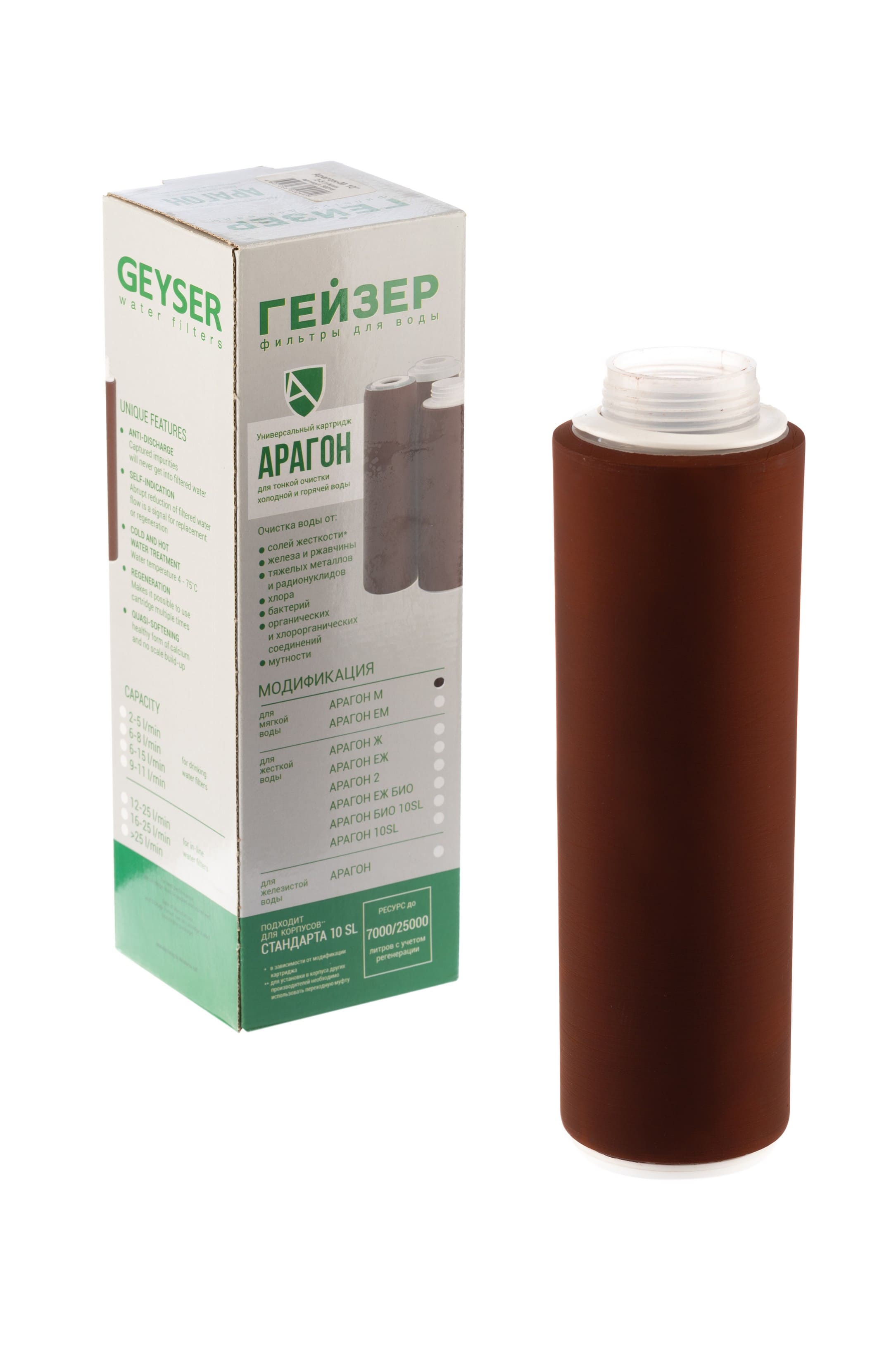 Картридж Гейзер Арагон М - применяется в бытовых фильтрах для комплексной очистки и смягчения жесткой воды. Для мягкой воды (резьба)