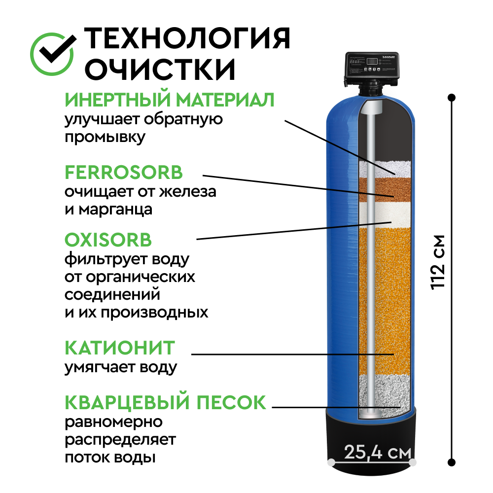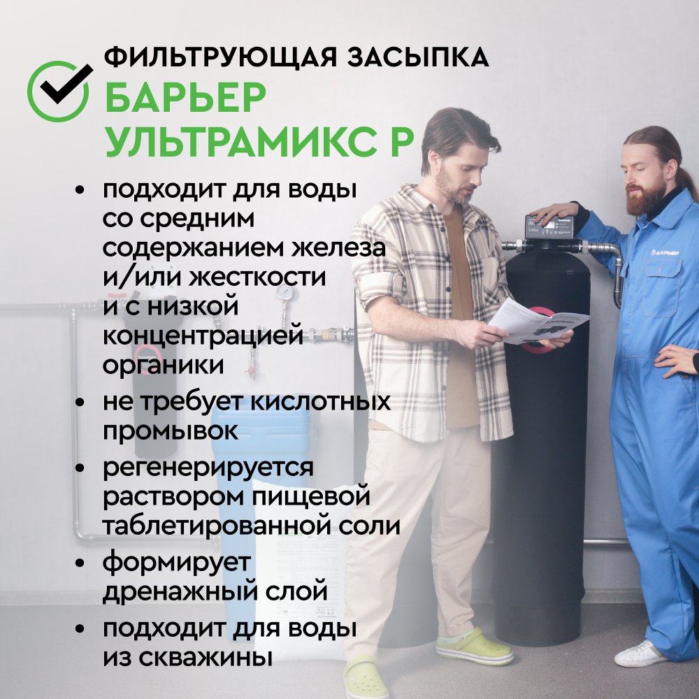 Фильтрующий материал БАРЬЕР УЛЬТРАМИКС P предназначен для удаления из воды избыточной жесткости снижения содержания аммония*, марганца*, органических соединений (перманганатная окисляемость /ПО)*. Финишная очистка фильтром БигБлю избавляет от неприятного запаха и привкуса воду, убирает мутность.