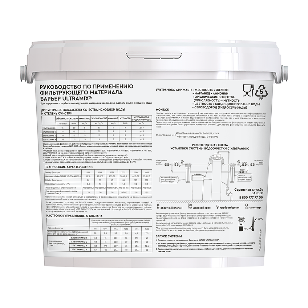 Фильтрующая смесь Барьер ULTRAMIX С 12.5л — эффективно очищает водопроводную и скважинную воду в пределах допустимых концентраций.