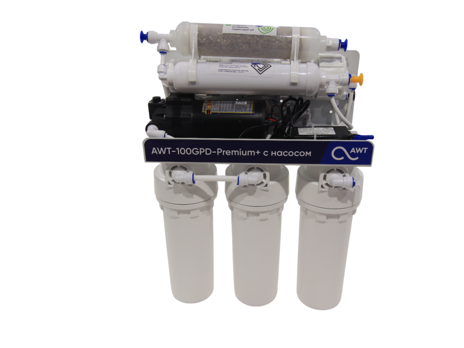 Система обратного осмоса AWT Premium AWT Premium RO100-А1M (с насосом и минерализатором) - используется с оснащенными высокоэффективными фильтрами сорбции и обратноосмотической мембраной, через которую проникают только молекулы воды и кислорода. Система оснащена повышающим насосом, который обеспечит необходимое давление на мембране.