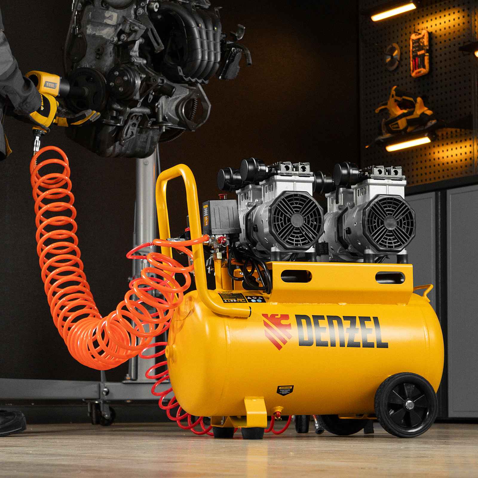 Компрессор воздушный Denzel DLS 2200/50, безмасляный, малошумный, 2200 Вт, 2x1100, 50 л, 380 л/мин - это надёжное и производительное оборудование, которое используется для сжатия воздуха и подачи его под давлением. Он идеально подходит для различных сфер деятельности, таких как строительство, автомастерские и другие отрасли, где требуется интенсивная работа с пневмоинструментами.