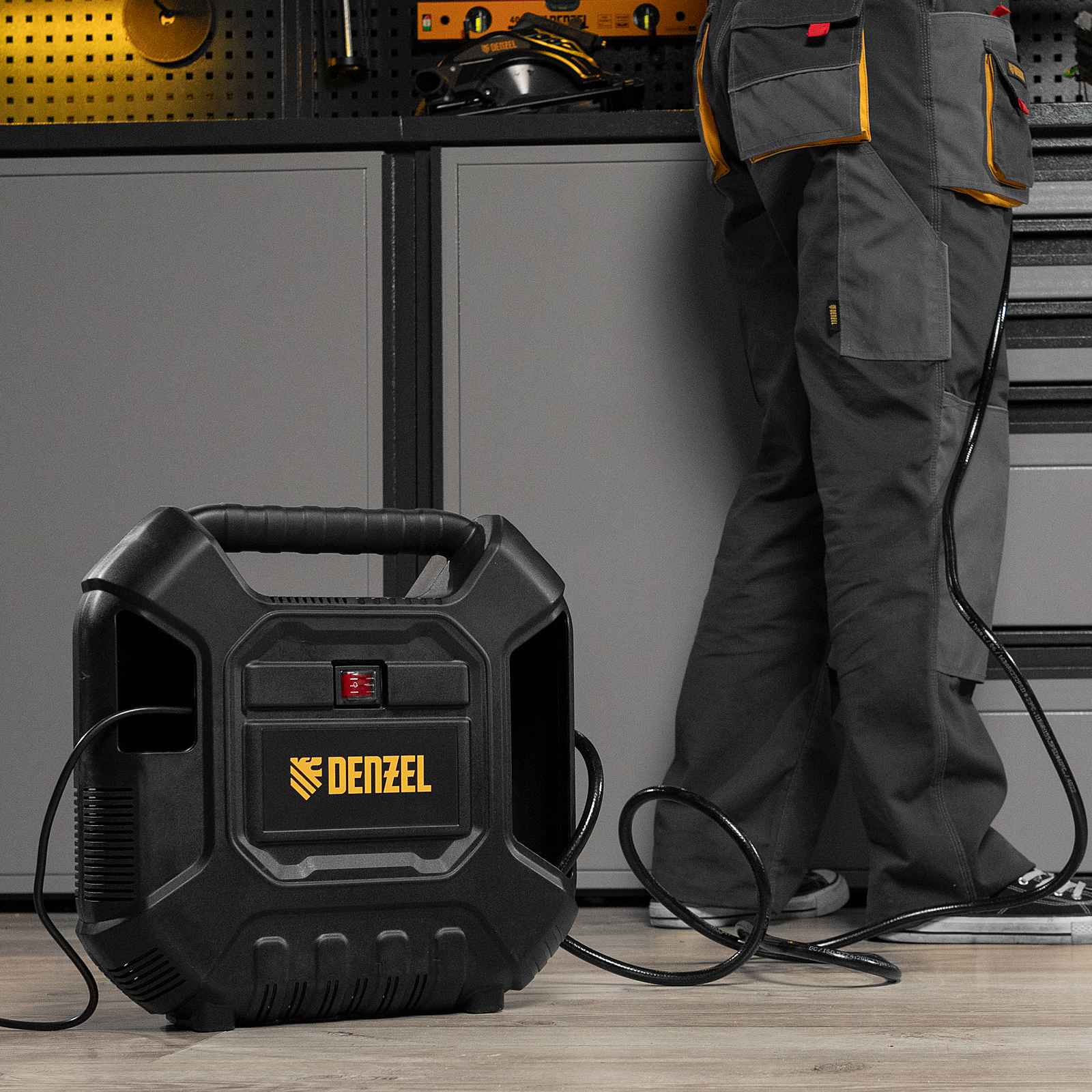 Компрессор воздушный Denzel предназначен для сжатия воздуха и подачи его под давлением.